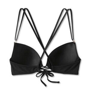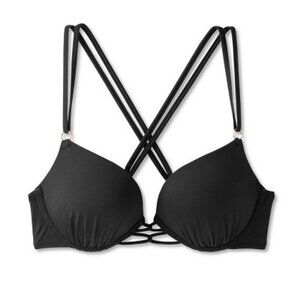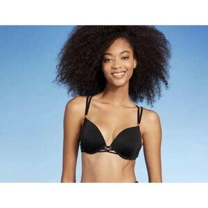 Shade & Shore Size XS 32B Solid Black Double Strap Push Up Bikini Swim Top