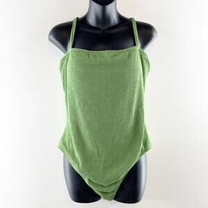 Shade & Shore Square Neck Textured One Piece Swimsuit Green Large