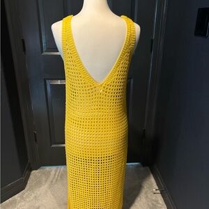 Bright yellow crochet cover-up by Shade & Shore. Ideal for beach days.