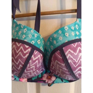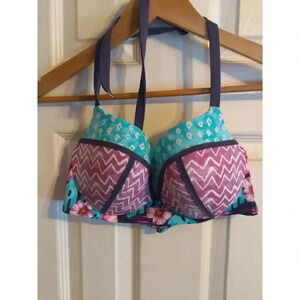 Shade & Shore Swim Bikini Top Halter Blue Pink Floral Sz 34C