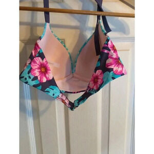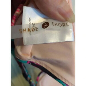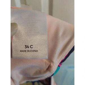 This pink tropical bikini top is from Shade & Shore, perfect for your next beach day. The strap type of this top is halter and it has a floral pattern. It comes in size 34 and the cups size is C. The top is a perfect look for a day out in the sun.