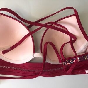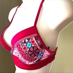 Shade & Shore Sz 36C Red Paisley Bikini Top | Boho Bohemian Festival