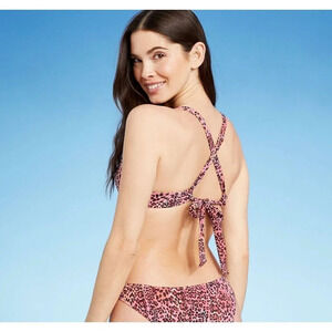 Shade & Shore Triangle Bikini Top Swimwear Leopard Halter Large Animal Print New