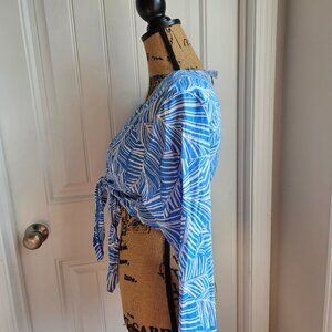 Shade & Shore Tropical Hawaiian Front Tie Linen Blend Cover Up Top Size Small