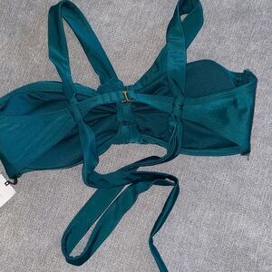 Shade & Shore Twist Center Front Bandeau Dark Green Bikini Top