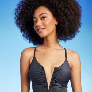 Shade & Shore V-Wire Plunge Cheeky One Piece Swimsuit Sz S (4-6)