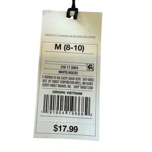 Shade & Shore white bikini bottom in textured fabric. High-waisted, lowest coverage, and extra cheeky. Size M (8–10). New with tags, perfect for beach or poolside.