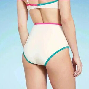Shade & Shore White High-Waist Color Block Bikini Bottom, XL