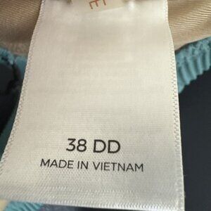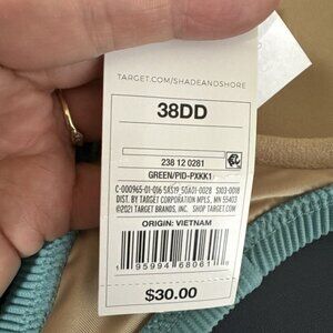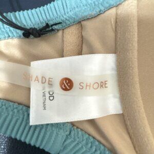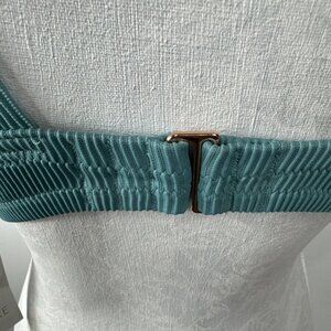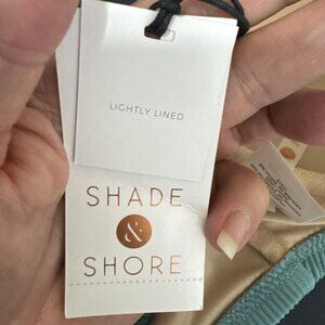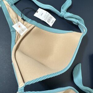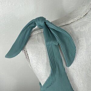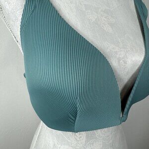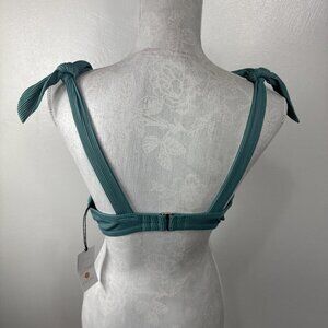 Shade & Shore Women's 38DD Padded Tie Shoulder Plunge Rib Swim Top Green Blue NWT
