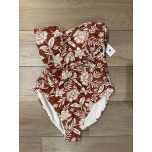Shade & Shore Women's Bandeau One Piece Swimsuit Swim Brown Floral NWT L 12 14