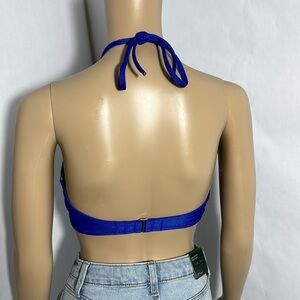 Shade & Shore Women's Bikini Top Blue Lightly Lined Ribbed Halter (8LZR4M)