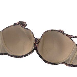 Shade & Shore Womens Black Paisley Bikini Top With Tie Front Size 36DD