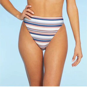 shade & shore striped multicolored high waist extra high leg extra cheeky bikini bottom