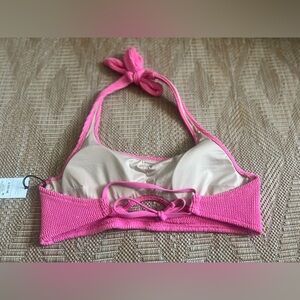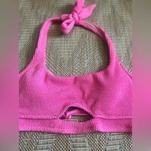 Shade &Shore Women's Pink Textured Cut Out Halter Bralette Bikini Top,Size L,NWT