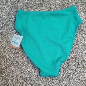 Shade & Shore Women's Size Medium (8-10) Green Textured High Waist Bikini Bottom