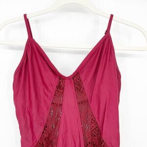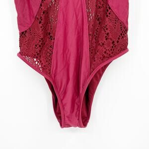 Shade & Shore Womens Whimsigoth Crochet Lace Cutout One Piece Swimsuit in Burgundy. Size Medium.