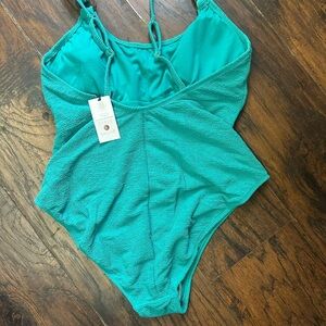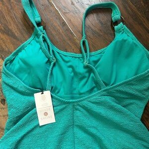 Experience the perfect blend of style and functionality with this Shade & Shore one-piece swimsuit in a stunning blue hue. Featuring a classic tank-style silhouette with wide straps and gold-tone ring hardware, this swimsuit is designed for both comfort and elegance. Its smooth fabric and high-cut leg design make it ideal for swimming and beach outings.