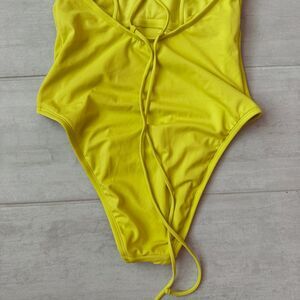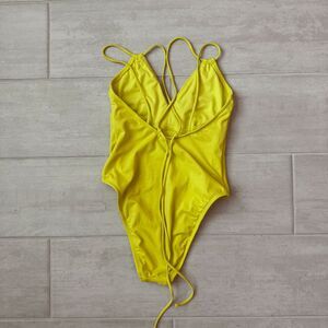 Shade & Shore Yellow Plunge Swimsuit One Piece Tie Back Cheeky Medium High Leg