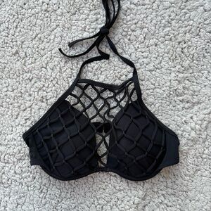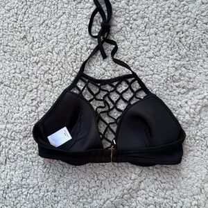Shade & Shore black halter high neck fish netting macrame bikini top size