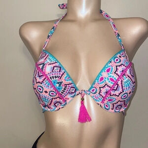 Shade & Shore womens 34D medium bikini bathing suit swim top push up pink tassel