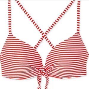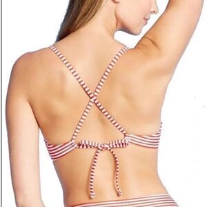 Shade & Shore Red & White Stripe Bikini Top Sz 32B