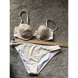 Shade & Shore Women’s Cream Lace Top 2 Piece Bikini Size L (36B) NWOT