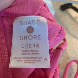 Shade & Short Hot Pink One-Piece Swimsuit Large Plunge Neck Tie Front