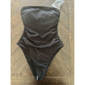 Shade and Shore Black Strapless Ribbed One Piece Swimsuit Size Small.