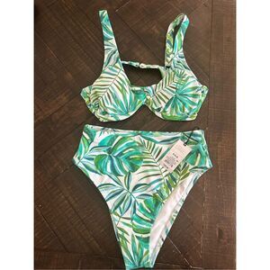 Shade and Shore Green and White High Rise Bikini Set Size Small bottom and size 36B top. Top new without tag and bottom new with tag.