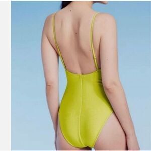 Shade and Shore Lim Green High Leg Cheeky Square Neck One Piece Swimsuit Size Large. New with tag.
