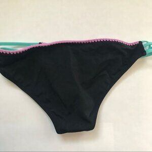 Shade & Shore Strappy Cheeky Bikini bottoms in Sun Coast. Primarily black with mint straps and pink details at the waistband. Light wear on back as pictured.
