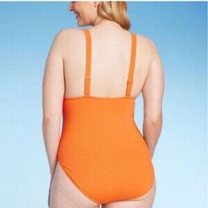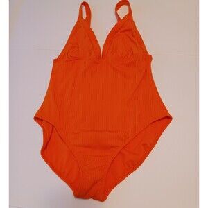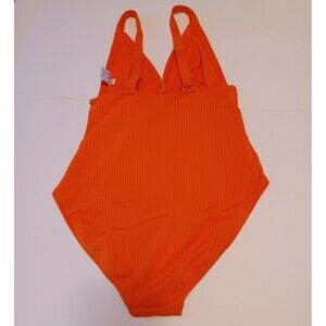 Shade and Shore Women's 1-pc Orange Ribbed Swimsuit Fits Size 12/14