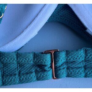 A bright teal color makes for the perfect sunny-day look especially if you choose to pair this bikini top with coordinating bottoms or an equally lively pair. Sewn-in cups provide you with enough coverage for confident wear while adjustable straps let you find your ideal fit. You'll love how the wrap-front silhouette beautifully contours to the figure for a flattering look along with the textured finish that lends a bit of extra definition.