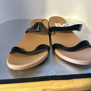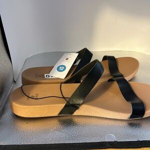 Shade and shore, new with tags. Two black straps slip on sandals. Size 12, beautiful sandals.