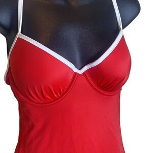 Shade & shore cabana one piece red swimsuit w white trim adjustable straps