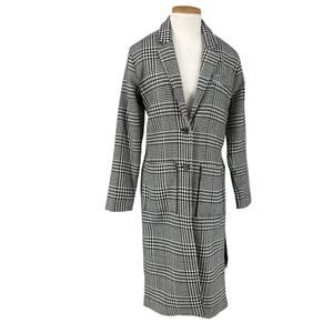 Shades Of Grey By Micah Cohen Houndstooth Glen Plaid Midi Coat Womens Small