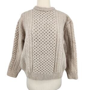 Shades of Aran Ireland Chunky Fisherman Sweater – Cream Merino Wool, Cable Knit- Excellent preowned condition.