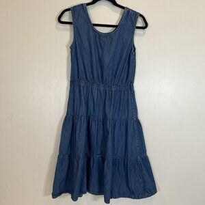 Shades of Denim Fit & Flare Sleeveless Tiered Dress Blue 100% Cotton M