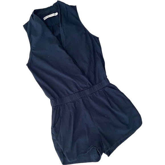 🍀Shades of Grey By Micah Cohen Blue Micro Check Summer Romper Size S