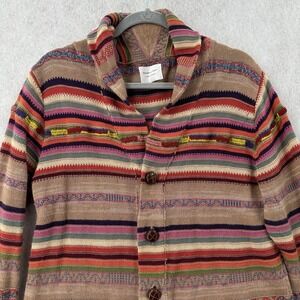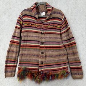 Shades of Grey Cardigan Sweater Womens MED Colorful Striped Linen Feathers Boho