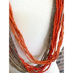 Shades of Orange 20 Strand Torsade Statement Necklace