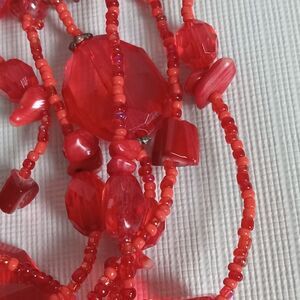 Shades of Red Transparent Assorted Beads Multi Strand Statement Layered Necklace