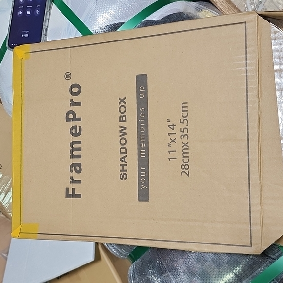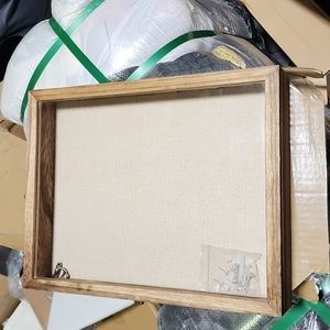 【Dimensions】- 11" x 14" shadow box with 2" working depth end by linen fabric back. Frame case contains 10 bead needle pins that help safely and firmly attach your mementos to the linen foam backing