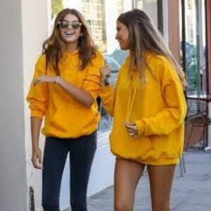 Sold out everywhere. Neon Orange (Pics of the stars is not the color sold - just showing how the sweatshirt wears). YOU are purchasing the orange color shown in the first few images