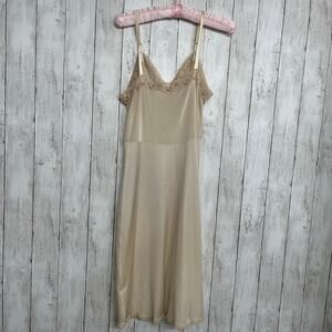 Shadow Line Vintage Lace Tan Adjustable Front Slit Classic Sexy Full Slip 32