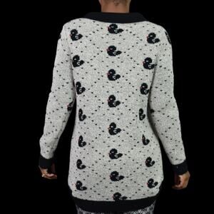 Shadow Rubber Duck Print Sweater Grey Knit Intarsia Block Whimsical Retro Small