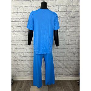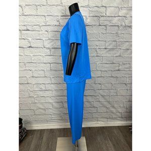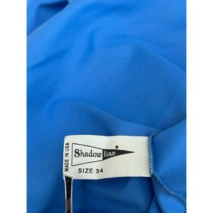 Shadowline Floral Neckline Button Up Blue All Nylon 2 Piece Set Women's Size 34