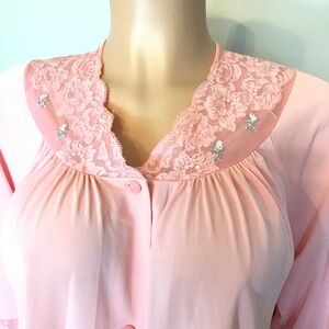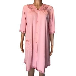 Shadowline Vintage Womens Pink Button Front Nylon Robe Dressing Gown Size Medium