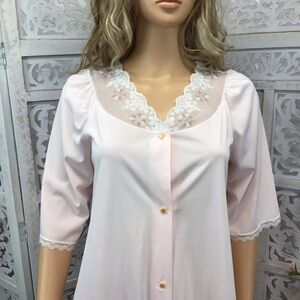 Shadowline Vintage Pink Floral Button Front Nightgown Size Small.