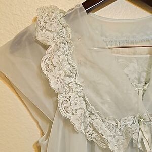 light, bluish green. beautiful, and sexy, 2piece vintage nightgown. great vintage condition. please refer to photos for more details and measurements. smoke free home. Questions? Leave a comment below!